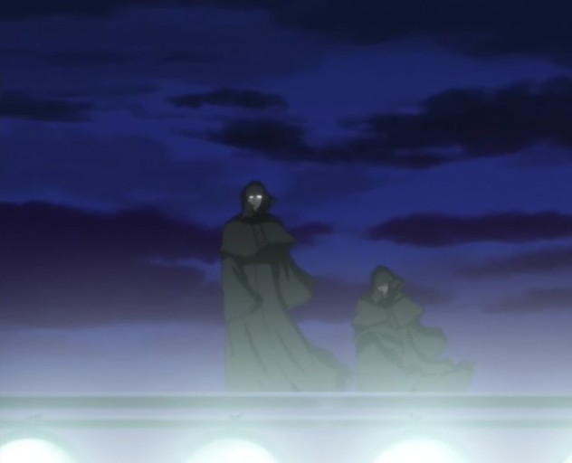 一瞬で翼手を斬る三体の人間らしき者