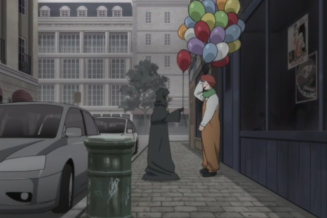 ピエロに風船をもらったりしているイレーヌ。