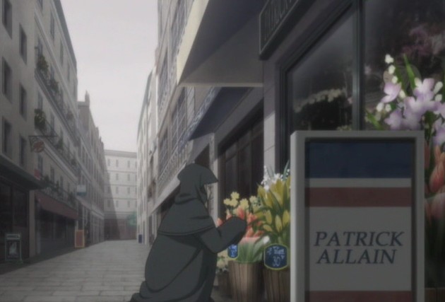 街中を歩くイレーヌの後をつけるカイ